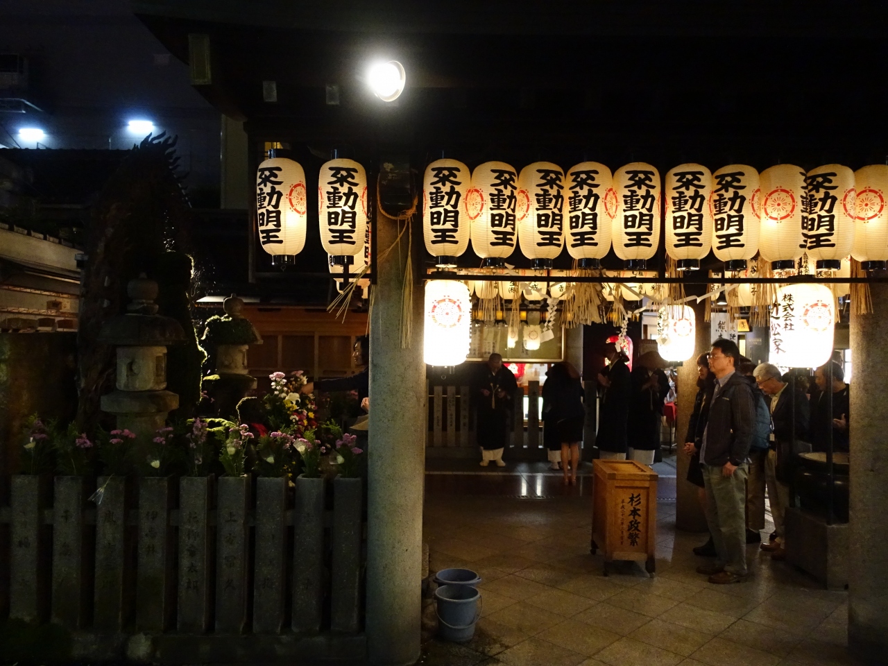 大阪ではお馴染の「水掛不動」には、夜になっても行列が出来ていました。