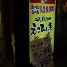 お初天神にある招きねこの看板が特徴的な安い居酒屋です。全品299円です。学生にはうれしいですよね。店内は若い雰囲気です。飲み放題でも2500円~だそうです。お得ですね。味より場の雰囲気が大事なら何でもありですよね。