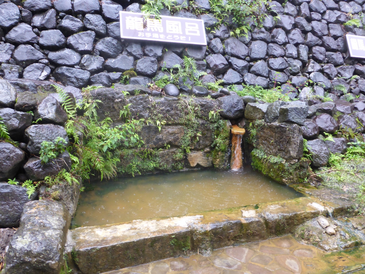坂本龍馬が霧島を旅行した際、18日間滞在した温泉です。現在は日帰り入浴施設と公園が整備されています。実際龍馬が入ったとされる湯船が川沿いに残っており、銅像の脇から階段を下りると間近に見る事が出来ます。