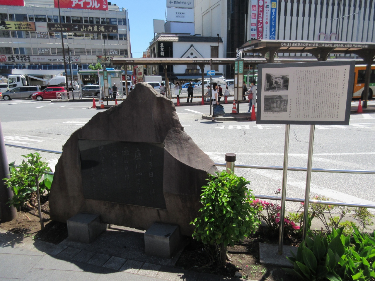 JR錦糸町駅の南口広場に「伊藤佐千夫牧者住居跡」の記念碑があります。左千夫は、ここで、当時新しい産業であった搾乳業を営んでいたのです。そんな家業を営みつつ、左千夫は文学に勤しみました。正岡子規や斉藤茂吉が立ち寄り、文学に関する議論を交わしたそうです。
