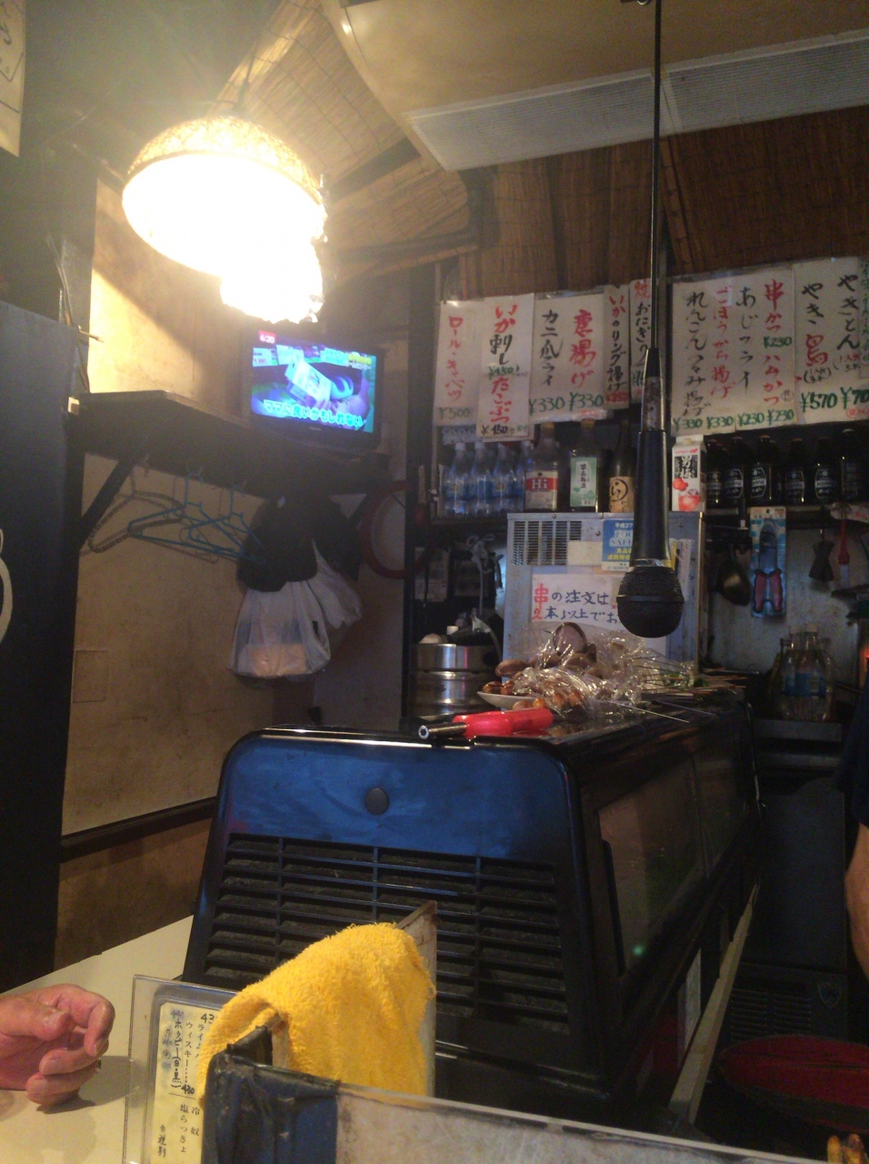店内にはマイクがぶら下がり、お客さんが帰ると、旦那がマイクでありがとうございます!と