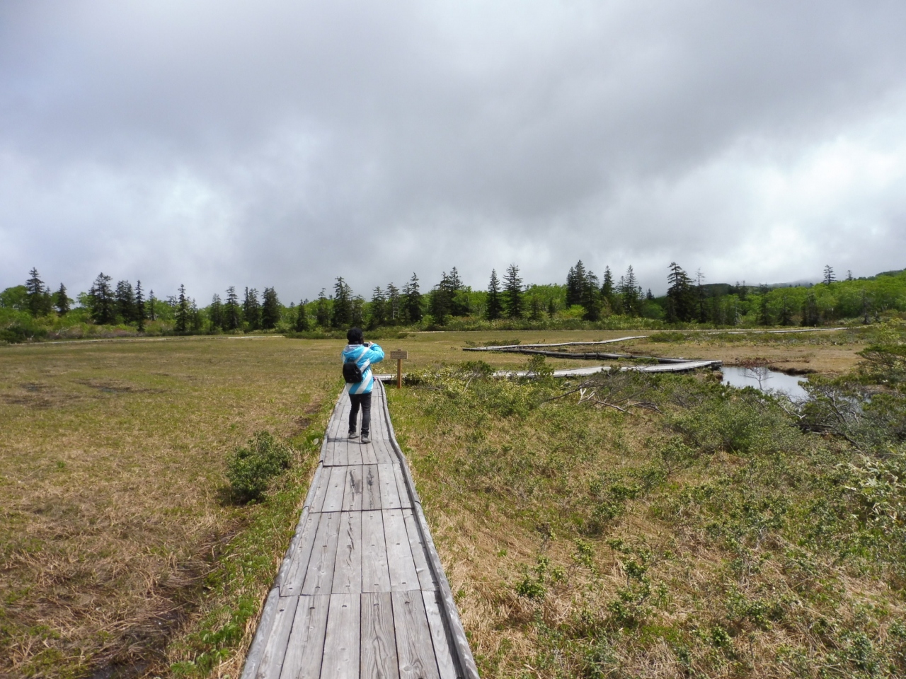 道はほぼ平坦で木道になっていて歩きやすいです。
