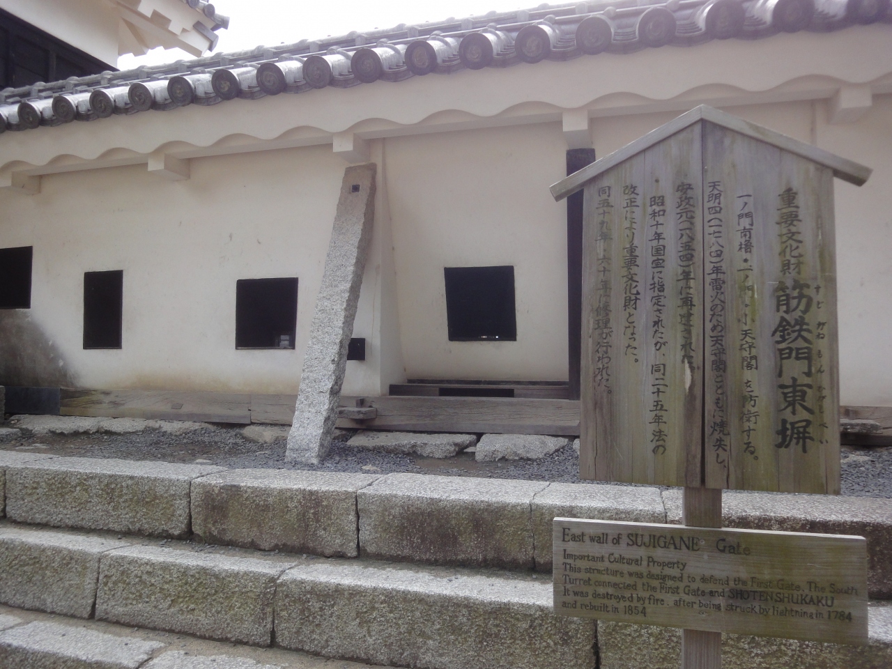 松山城の筋鉄門東塀は、雷火のため焼失してしまったので、再建されておりますね。