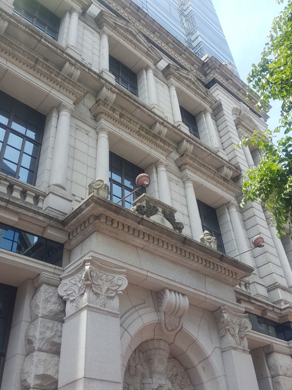 妙に立派なのに古い建築様式で、でも上を見上げると近代的なビルが建っていて???
