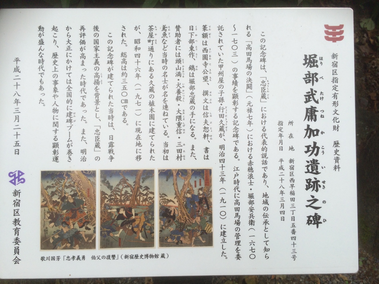 参道でまず目に入ったのは「堀部安兵衛之碑」。