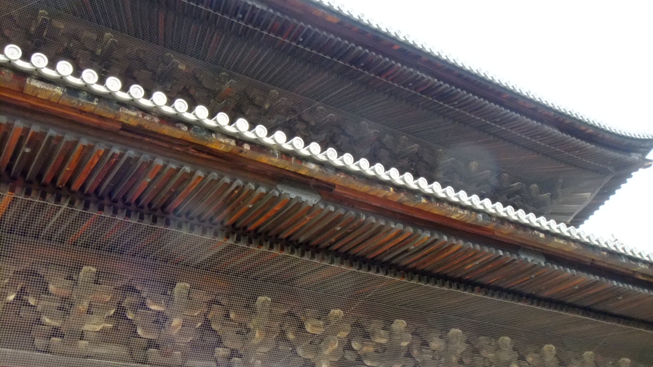 南禅寺入り口にある大きな茶色の木製の立派な門です。「日本三大門」の一つに数えられるそうです。ちょうど修学旅行生の集合場所になっていたらしく、門の下には学生がたむろしていました。三門とは悟りに至る為に通過する「三つの関門」を表すそうです。