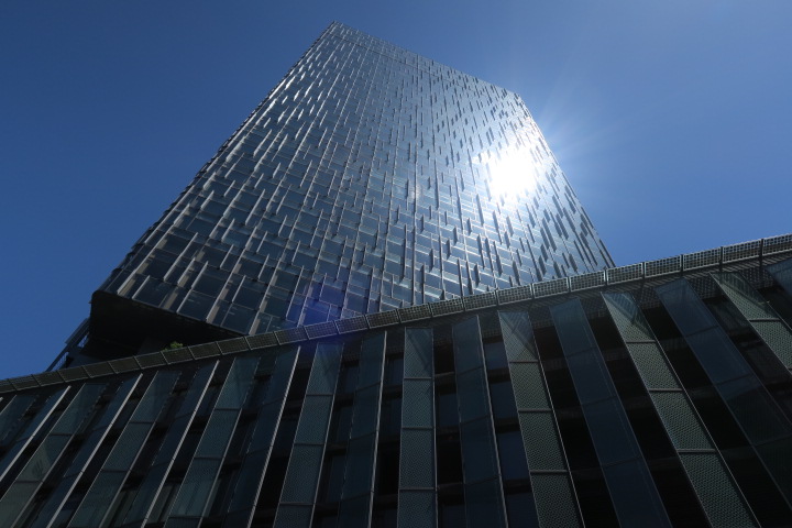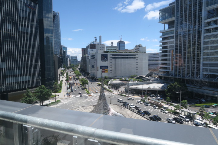駅前の新しいビル・・・5階のスカイデッキで寛いできました。テラス風になっていて、概ね名古屋駅方面に開けています。ちょっとした広場になっていて、名古屋方面のツインビルなんかを見ながら一休み。ビル内には、テイクアウト系のお店もあるので、お昼御飯なんかを食べながら寛いでいる人もいましたよ。