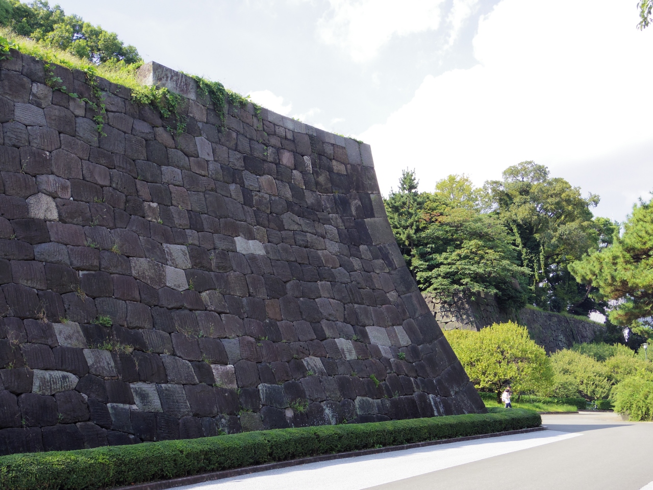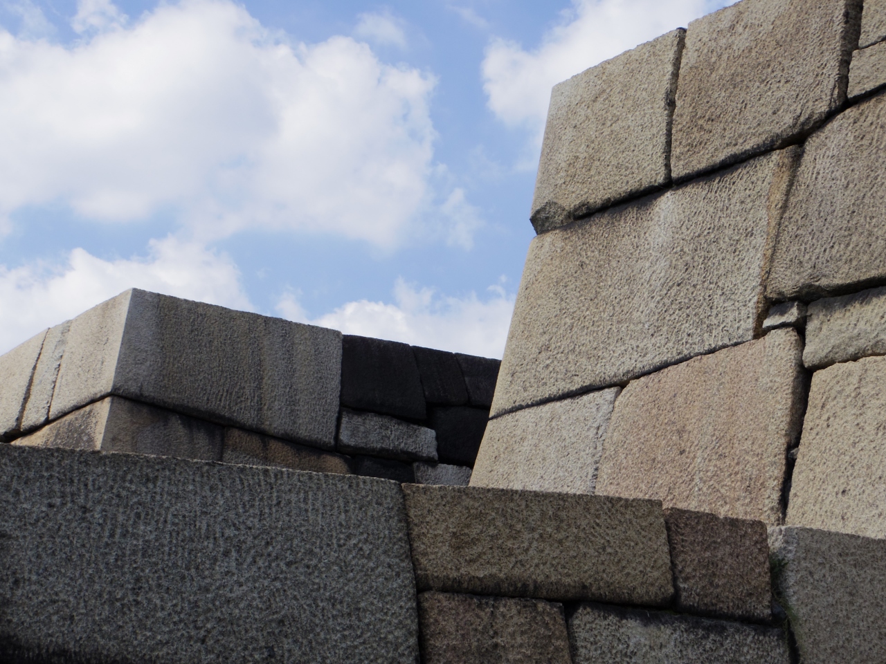 東西約41m、南北約45m、高さ約11m、花崗岩の切石を積み上げた見た目もとても美しい石垣です。