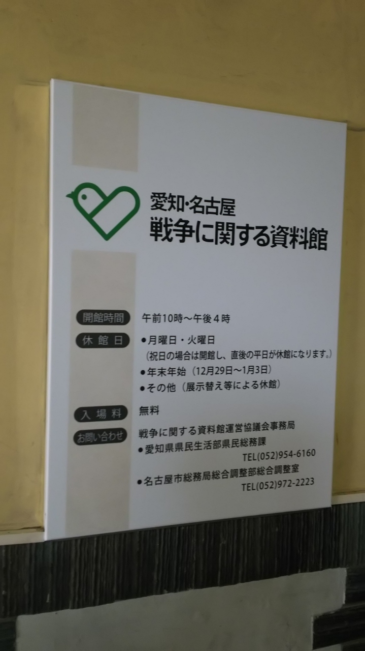 大津橋の交差点近くにあります。バロック様式の洋館で、周囲と異彩を放っています。建物を入ると、「愛知・名古屋 戦争に関する資料館」があります。小さなスペースに名古屋大空襲などを伝える展示品が並びます。当時の小学生が授業で描いたという「南へ進め」という絵が心に突き刺さりました。時代は子供の心をも狂気にさせます。