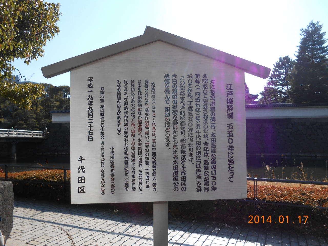 太田道灌公追慕の碑は、大手濠沿い平川門近くにあります。