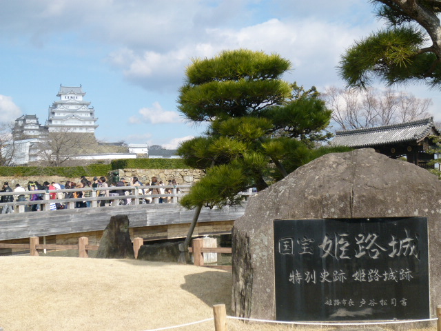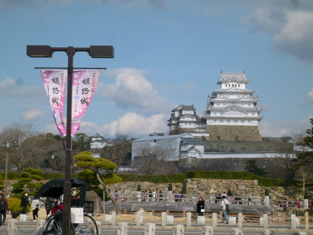 姫路駅の北口を出ると遠くからでも真っ白な城郭が判ります。約6年に及んだ平成の大修理で白漆喰総塗籠造り工法によって漆喰塗り替えや屋根の修理、構造補強などが行われ平成27年(2015年)3月完成。白漆喰も美しい屋根や壁の白さが際立つ姿は素晴らしいですが、天守南側の石垣周辺に生える樹木数十本が剪定され修繕前との違いにお城ファーンとしては何かが足りないように感じ残念でなりません。