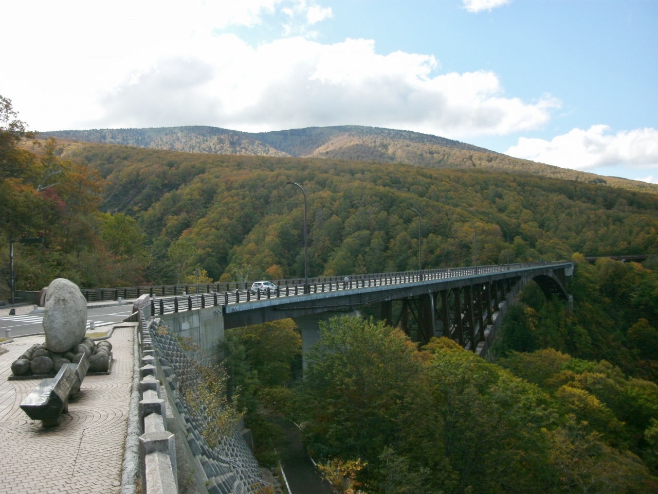 青森から十和田湖方面に行くときに立ち寄りました。青森市街からだと国道102号線から394号線に曲がって2kmほど進むと、目の前に見えてきます。5年前の5月の中旬に行ったときは殆んど観光客を見ませんでしたが、今回訪れたのは10月上旬で、紅葉見物のためか観光客が結構いました。