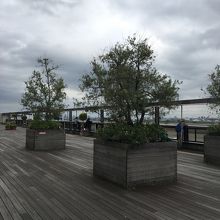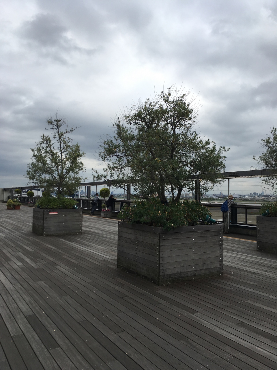 大阪の主要空港の一つ伊丹空港。ここの屋上が、公園のように開放されていて、全面ウッドデッキを使ったうえで更に緑化されています。飲み物の販売機もありますし、飲食店もありますので、空港を利用しないまでも見学に来ている人も多数いて和めます。