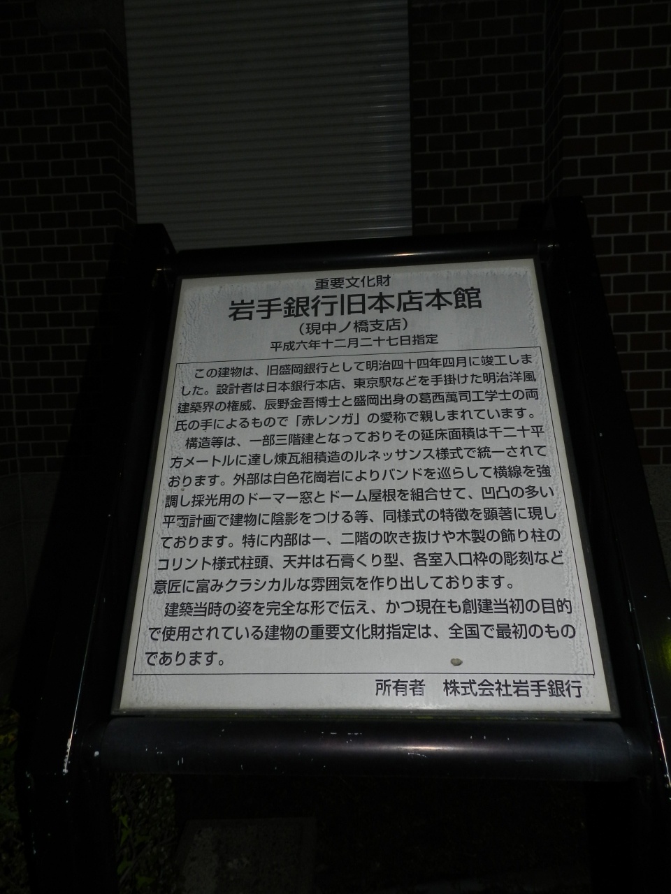 『岩手銀行旧本店本館』は、旧盛岡銀行本店の本館として明治44年に竣工されたもので、国の有形文化財にも指定されています。