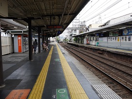 東福寺駅はJR奈良線では京都から一つ目の駅で奈良線と京阪線が乗り入れる駅です。駅周辺は特に無いが中学・高校が有る為、写真は昼時でしたので閑散としてますが平日の朝方は学生さんで一杯になる駅です。歩いて10分程度の場所には通天橋で有名な東福寺や泉涌寺が有ります。