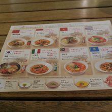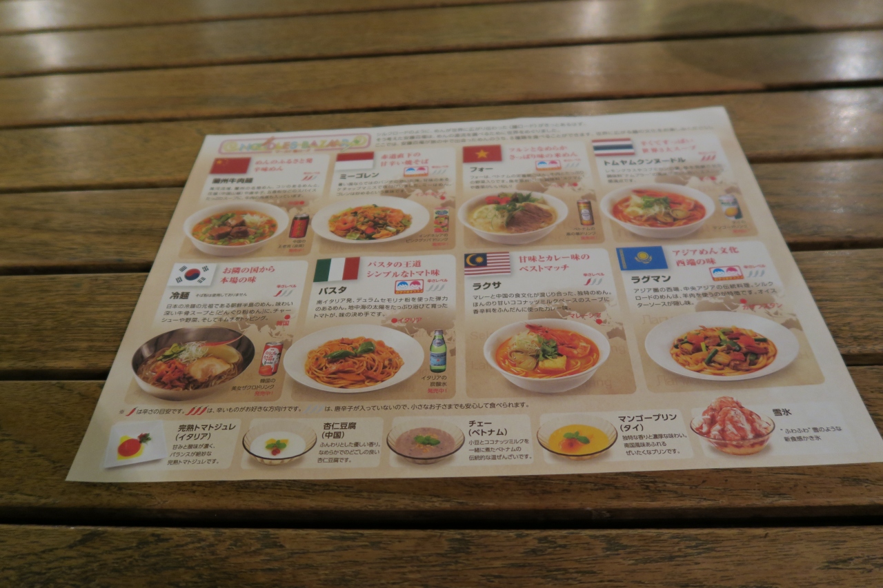 フードコートに、いろいろな国の麺料理の店が入っています。