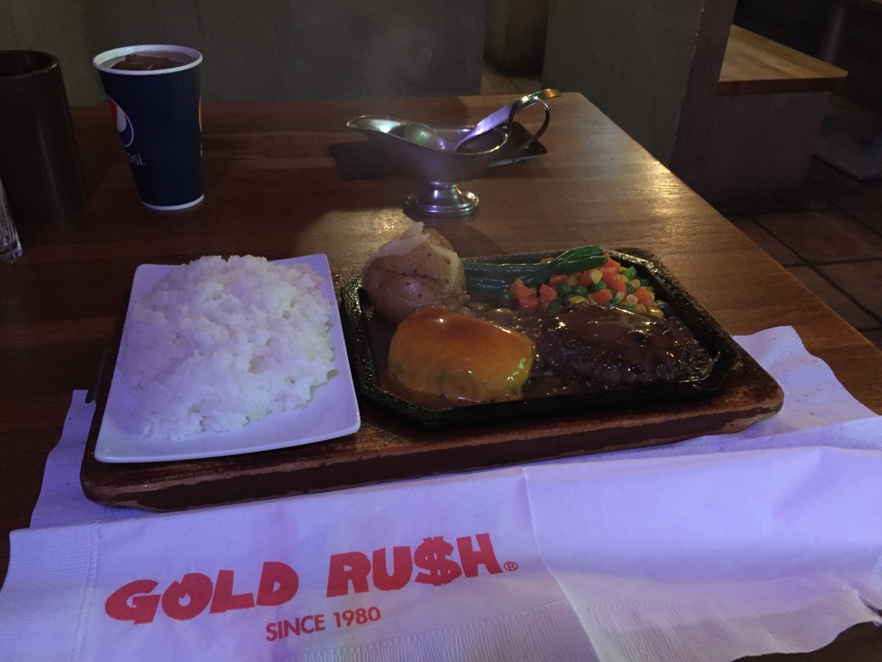 私はデミソースで食べるラッシュハンバーグとチーズハンバーグのハーフ&ハーフにしました。
