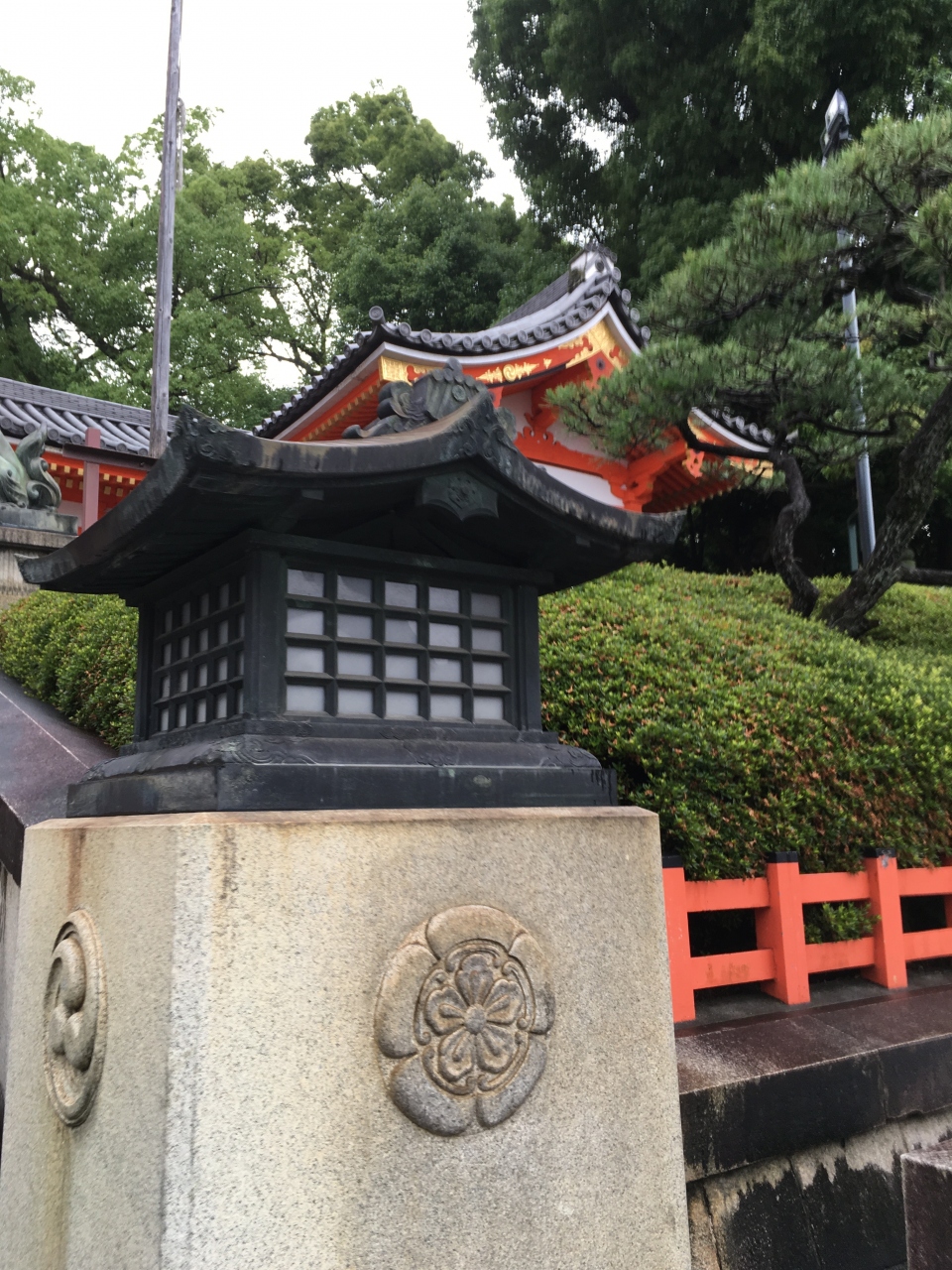 祇園の神様でもある八坂神社。いつでも観光客で賑わっています。境内も広く、いろいろな建物がここにあります。この神社から真っすぐ伸びる四条通は東山区側は祇園商店街としても知られていて、八坂神社参道でもあり、いつでも人が多い京都有数の繁華街でもあります。
