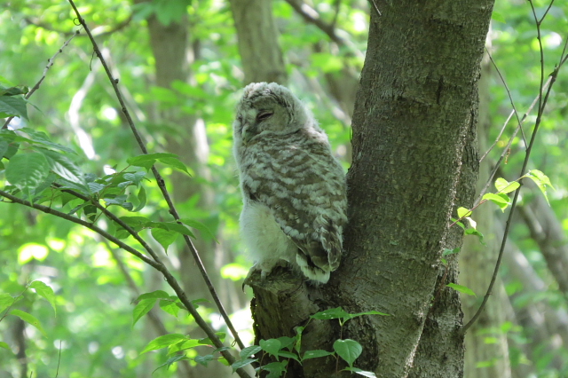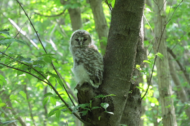 茨城県水郷県民の森で、今年4月にフクロウが営巣し、無事に雛が巣立ちました。