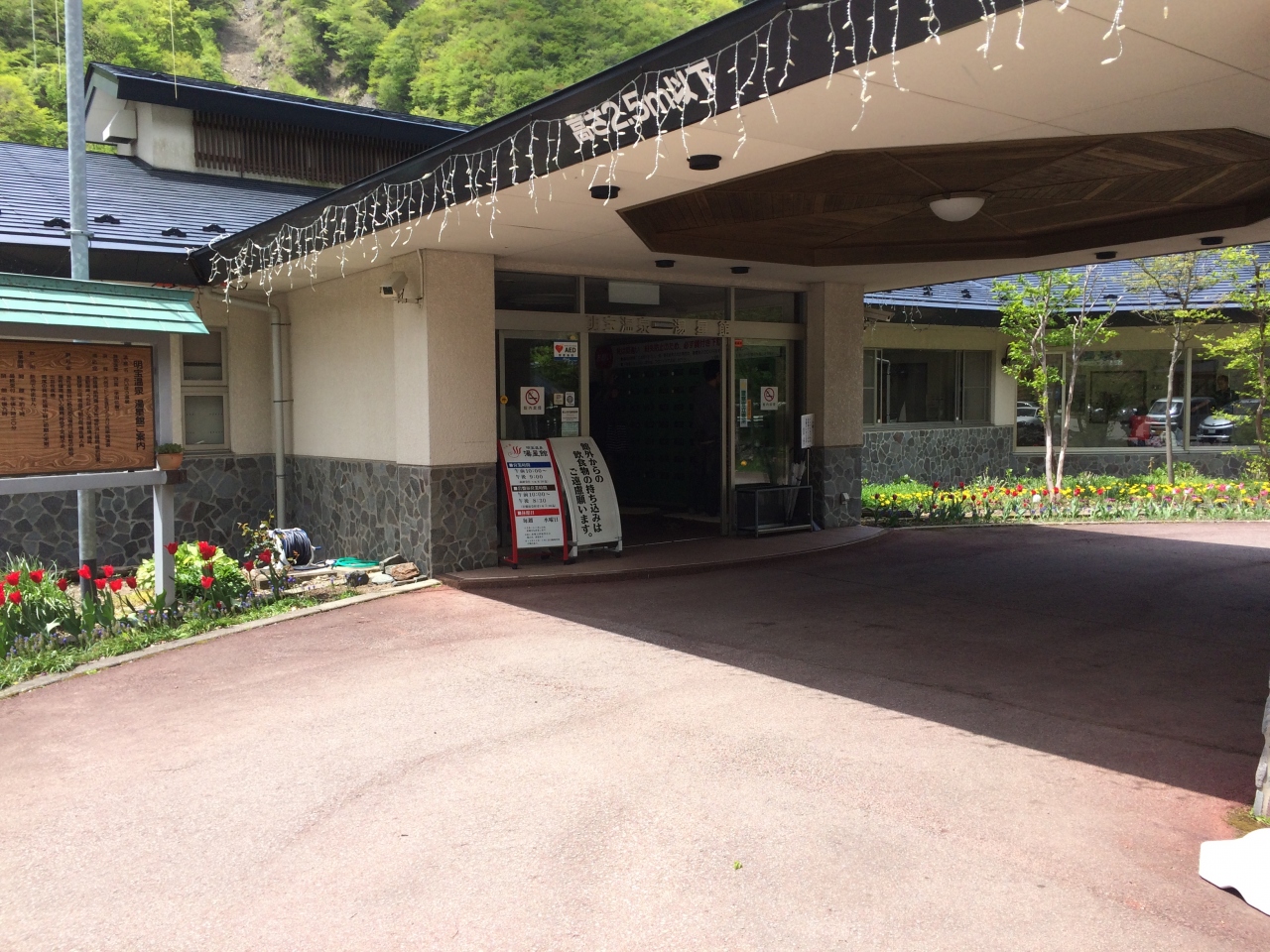 明宝スキー場へ行く途中にある立ち寄り温泉です。料金は600円ですが、地元の観光施設なら50円の割引券が置いてあります。湯は少しぬめり感のあるアルカリ泉で、露天風呂には打たせ湯、内湯にはジャグジーがあります。ちょっと塩素臭がきついのが気になりますが入浴後はポカポカ体が温まりますよ。