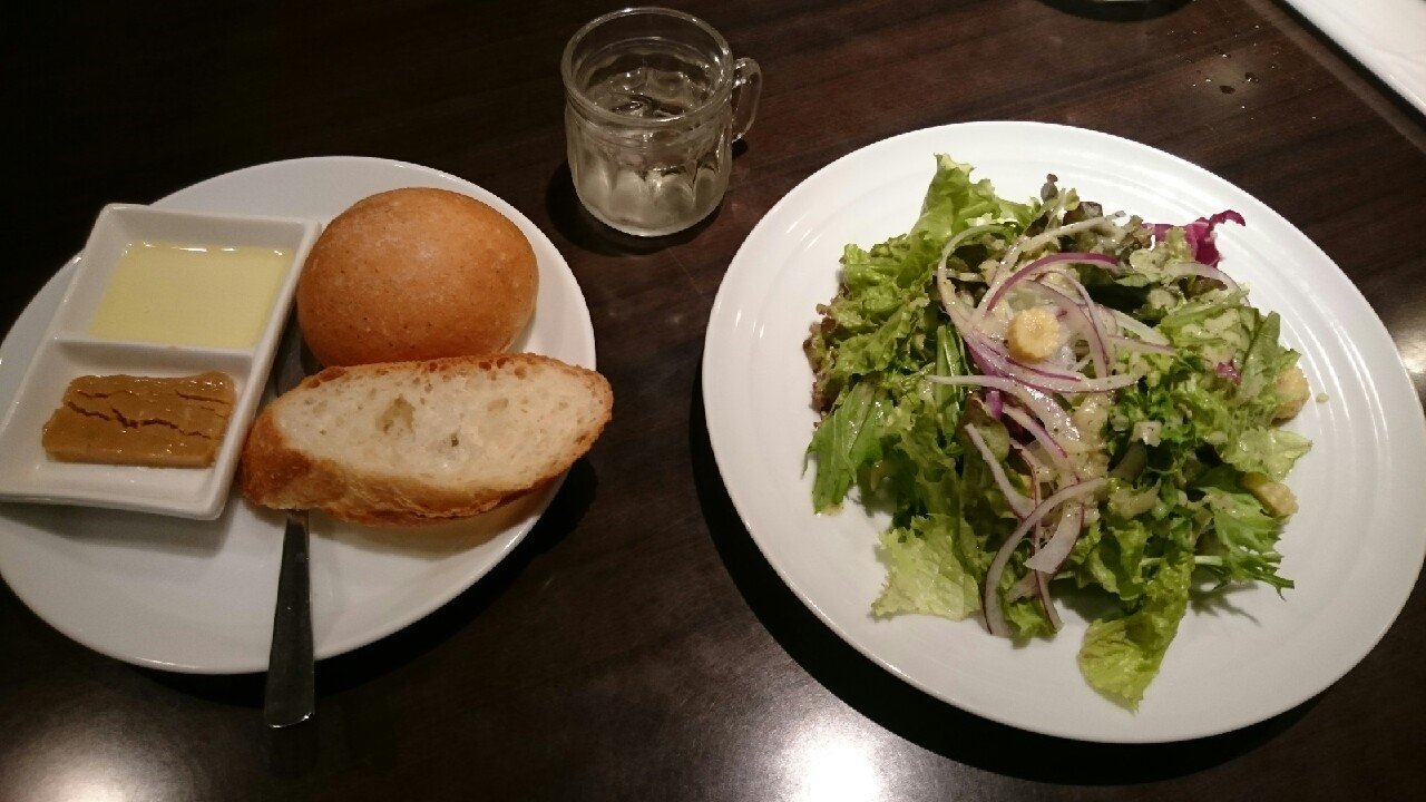 ランチにはパン、サラダ、デザート、ドリンクが付いています。