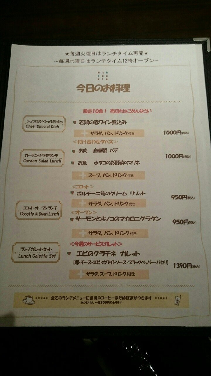 名物はガレットですが1,000円以下で食べられるココットランチにしました。