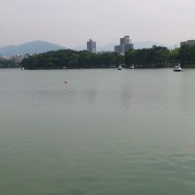 地下鉄の大濠公園駅で降りて、標識のままに進んでいくと、この大濠池の前に出ます。もともとは、福岡城の外堀だったそうですが、堀と言うよりも池そのものです。反時計回りに進んで行くと、池の中の島に渡るための橋があります。池の周りはジョギングコースになっていて、多くの方が走っていました。都会の真ん中に、こんな自然豊かな場所があって、博多は素晴らしいところです。