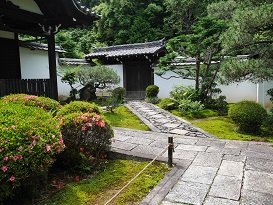 東福寺の日下門を出て中門へ向かう途中左側に芬陀院を見つけたので寄って見ました。この寺院には雪舟作の庭園が有る為「雪舟寺」とも呼ばれています。今の時期だけ庭園を公開してるが紅葉の時期は90%以上が中国系の観光客で埋まる為公開しないそうです入口付近だけでも充分楽しめます。