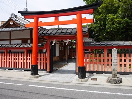 東福寺から伏見稲荷大社へ歩いて行く途中の伏見街道沿いに建ち街道沿いの為参道も無い小さな神社ですが、外見からは想像もつかない歴史を持つ神社で伏見稲荷の境外摂社、創建は不明ですが平安時代から有る神社だそうです。境内は自由に入いる事が出来、祭神は伏見稲荷の五大神の一つ「田中大神」です。