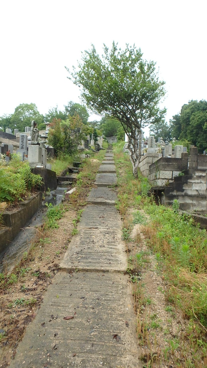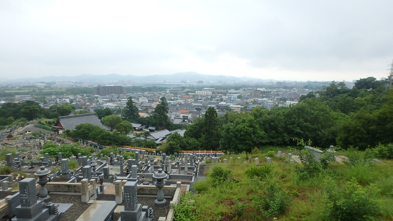 本堂の後ろの山には墓所があり、道を上っていくと山頂に達します。そこからは、旭川~岡山市街地方面が一望できます。