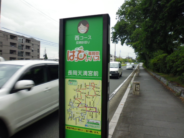 長岡京の市内を走る小型のバスで、便利に長岡京市内を走っています。バス停は天満宮の前にもあって便利に使えます。ここから市内の名所へ移動できます。