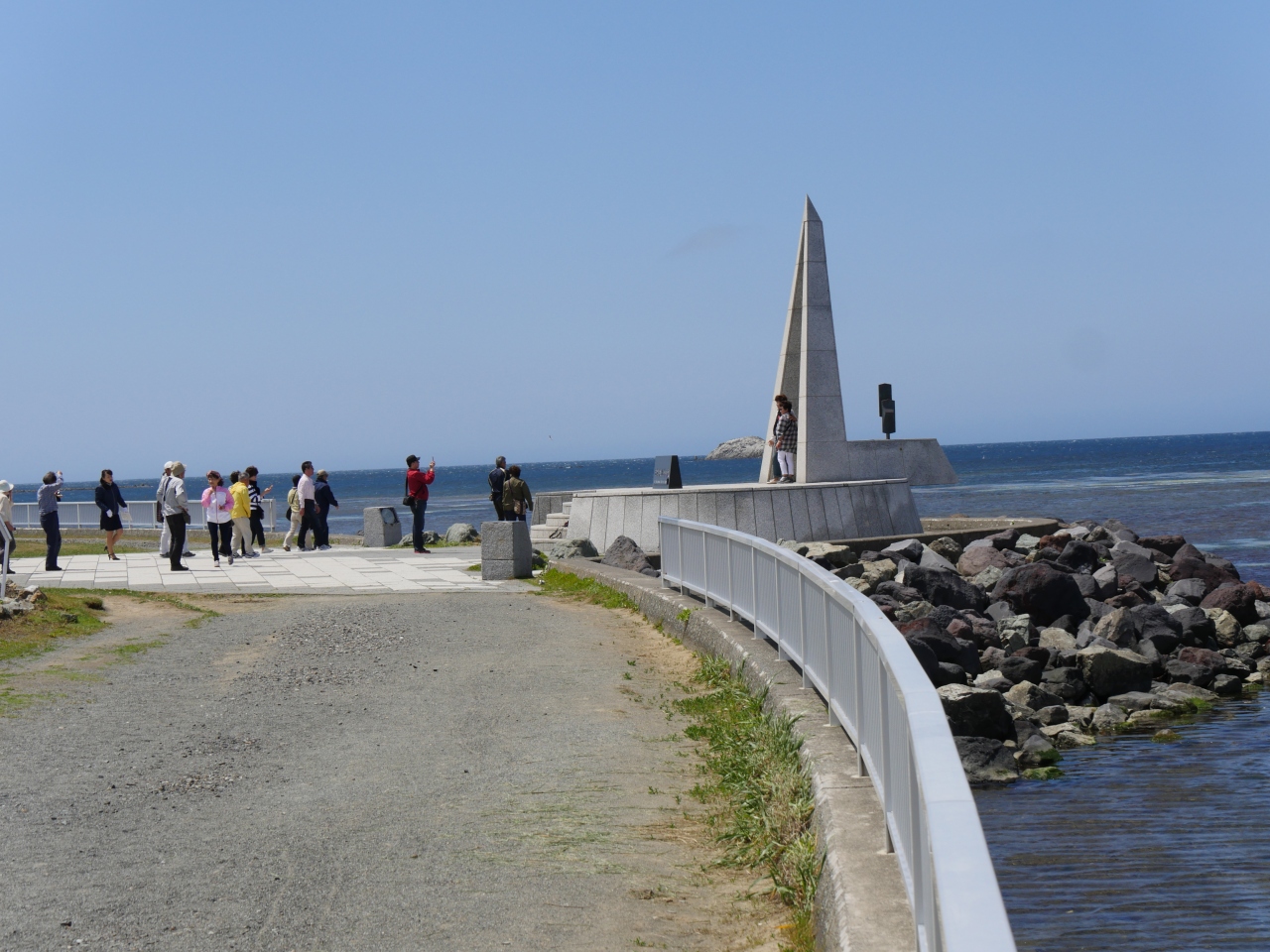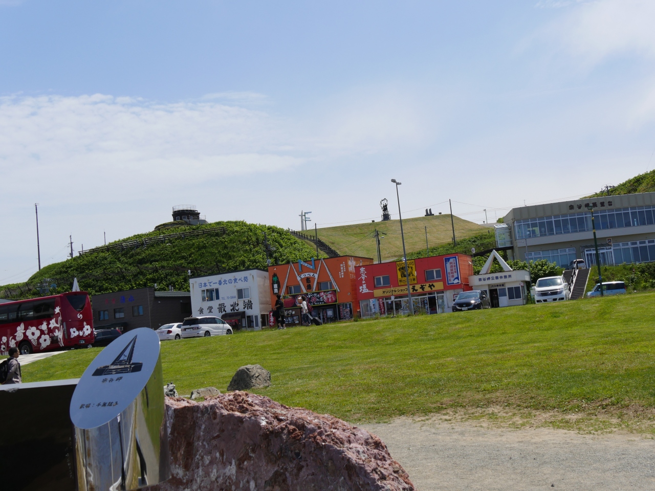 稚内でフェリーの乗り継ぎに3時間あったのでレンタカーを借りて向かいました。大急ぎの観光でしたが、駐車場は広く、風が強いことを除けば観光しやすかったです。魚介類の串焼きとかお土産店が数軒あり大型バスも訪れていました。サハリンは夏は見えにくいようです。岬の防波堤が低いのに驚きました。磯でカニや15センチ程の魚がたくさんいました。