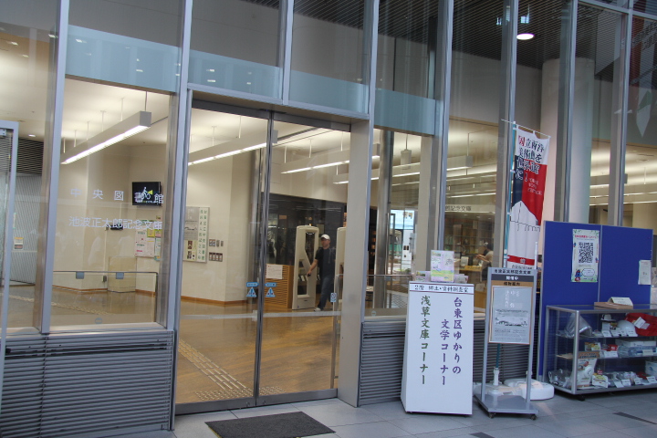 三社祭の初日に祭の合間に浅草界隈を散策した際、台東区立中央図書館内に池波正太郎記念文庫を見つけたので立ち寄ってみました。