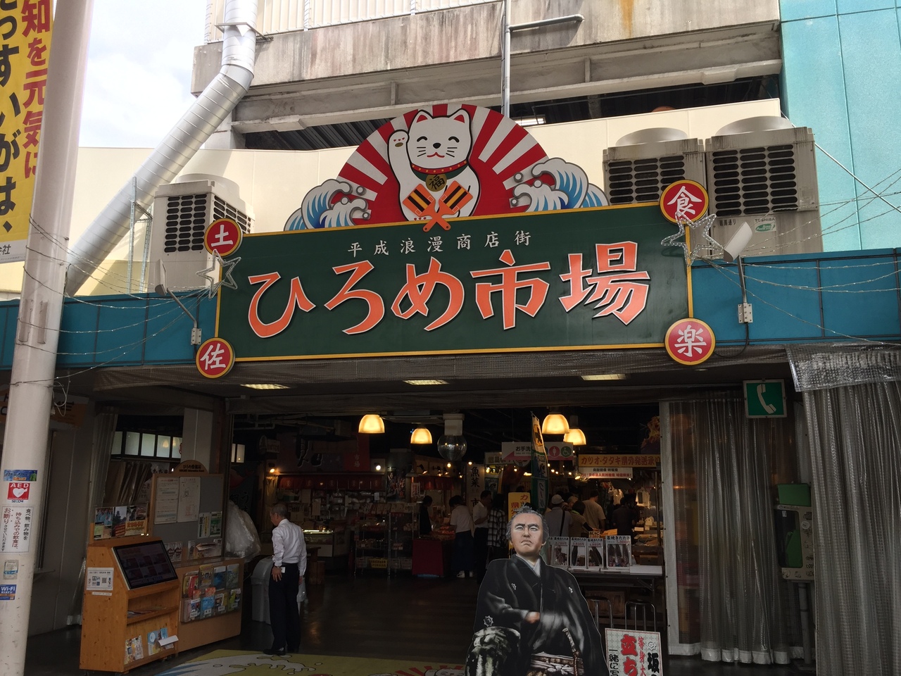 魚屋さんやお惣菜やさんなど様々なお店が約40店舗もあるらしいです、屋台村の様になっていて、それぞれに好きな食べ物を好きなお店から買って来てテーブルで美味しくいただくと言うスタイルです。お昼前から生ビールや酎ハイを飲んでいる人たちも多く楽しい市場でした。