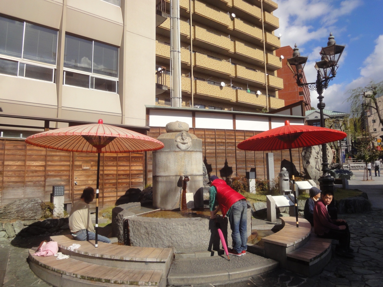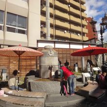 やはり、道後温泉本館で使用した湯釜から出る足湯が一番有名でしょうか。
