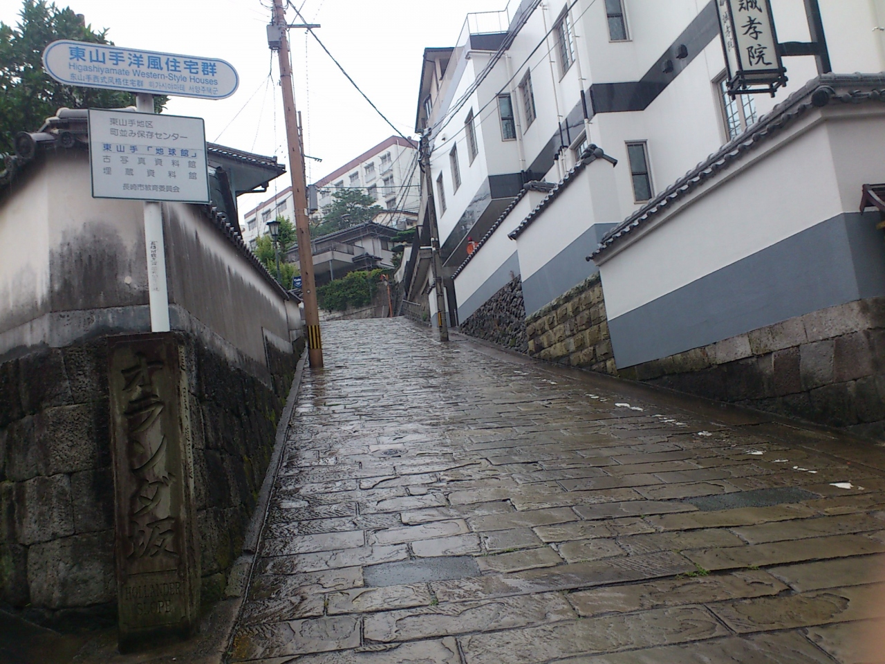 長崎の有名な観光スポットですが、小雨が降っていたせいかあまり観光客がいませんでした。大浦天主堂とグラバー邸を見た後に、長崎孔子廟へ向かう途中、東山手洋風住宅群いわゆる洋館が建ち並ぶ通りです。きつい坂が石畳になっていて、ところどころの洋館を眺めながら歩くと、なんとも言えない良い気分でした。