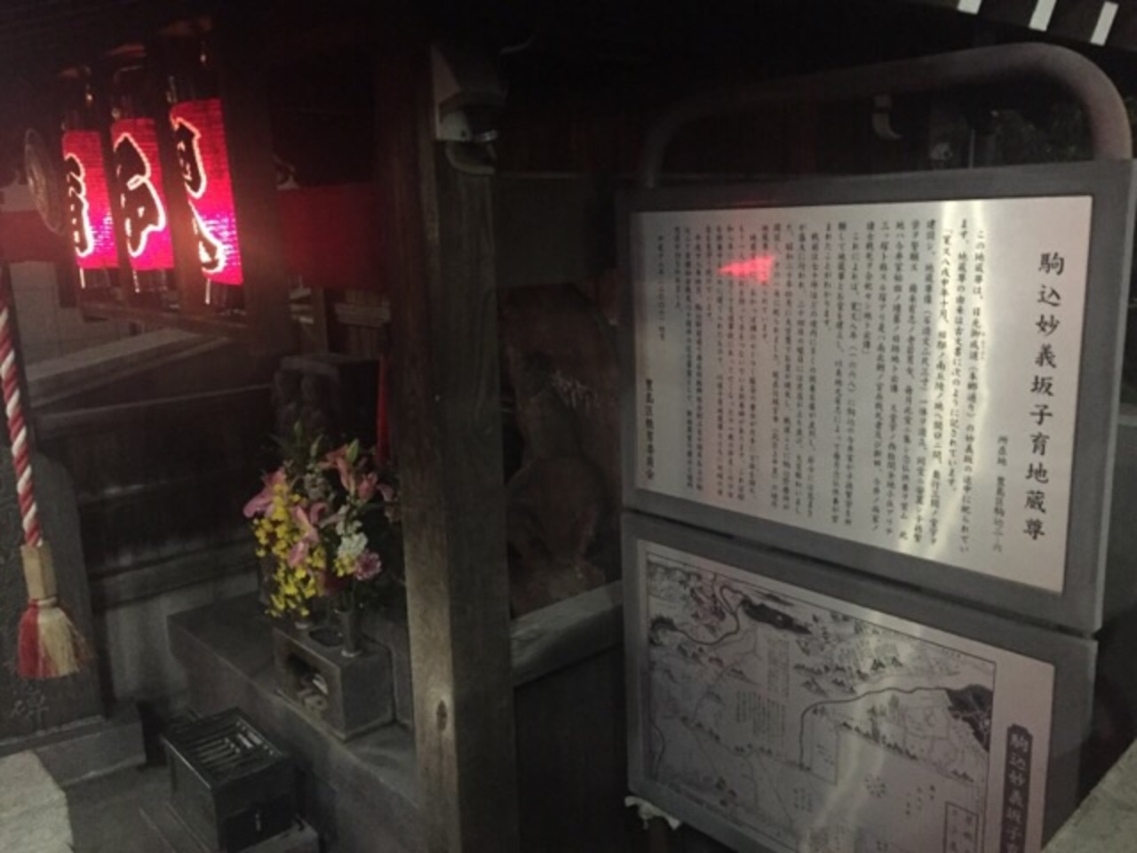 1668年に駒込の今井家が子孫繁栄を祈願して地蔵尊とお堂を建立したことからはじまり、戦前は70坪ほどの境内に多くの供養石像が並列していたようですが、1945年の大空襲でお堂が焼失し、規模が現在のように小さい地蔵尊になったようです。