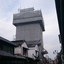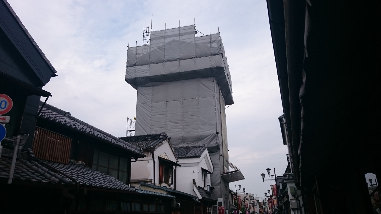 蔵のまち川越に行って、有名な時の鐘を見ようと思いましたが、現在工事中で、シートに完全に覆われていて全く見ることができませんでした。でも壊してるわけじゃないので、大きさはだいたいわかりました。横の狭い通路から、裏手にある神社に行くことはできます。