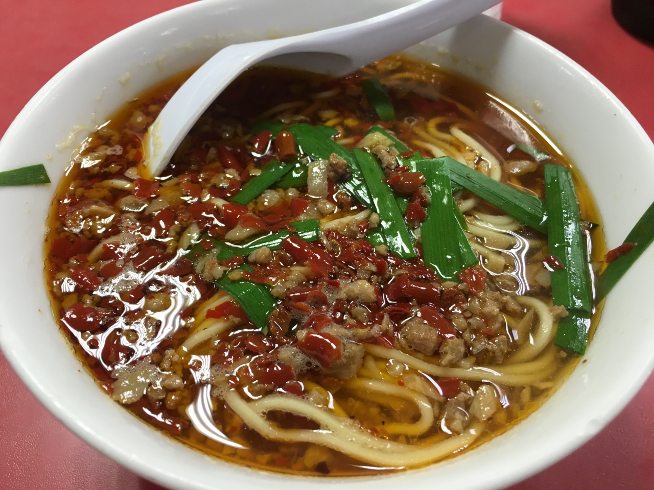 すうに台湾ラーメンきました。小ぶり器。久々に食べると辛い。