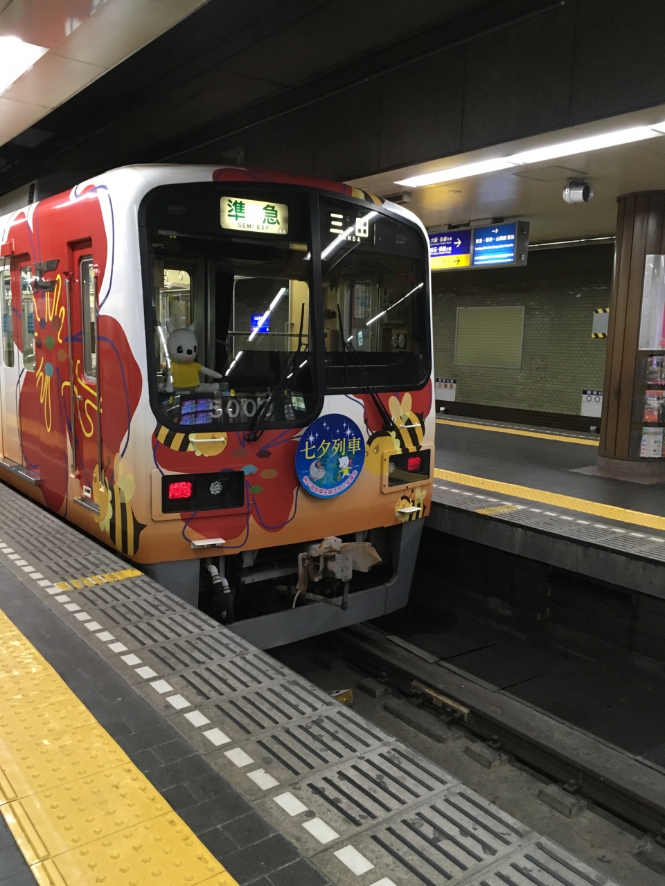 新開地から湊川を経て、有馬線を経由してから三田に向かう電車です。案外と種別は多いのですが、下り方面は準急と各駅停車だけしかありません。車両は阪急とにていてシェードは格子戸になっています。運賃は高いのですが、空いているので気に入っています。