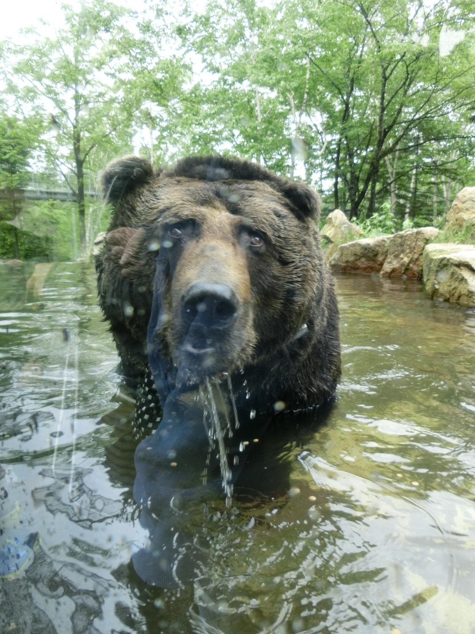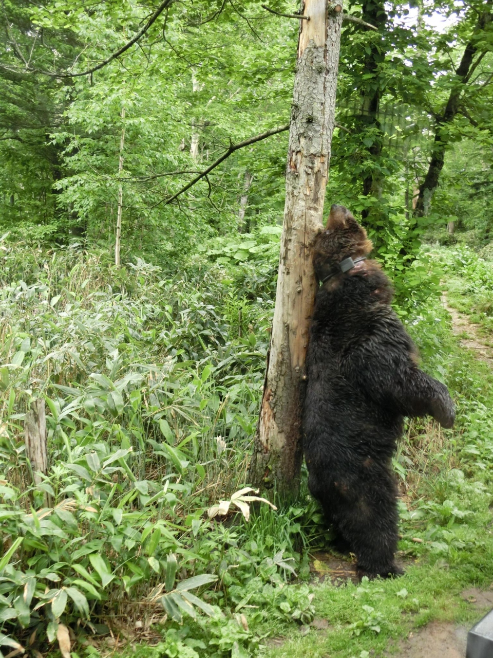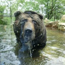 広大な敷地内にヒグマたちが野生に近い状態で生活していて、敷地内を横断する高台の遊歩道から観察することができます。