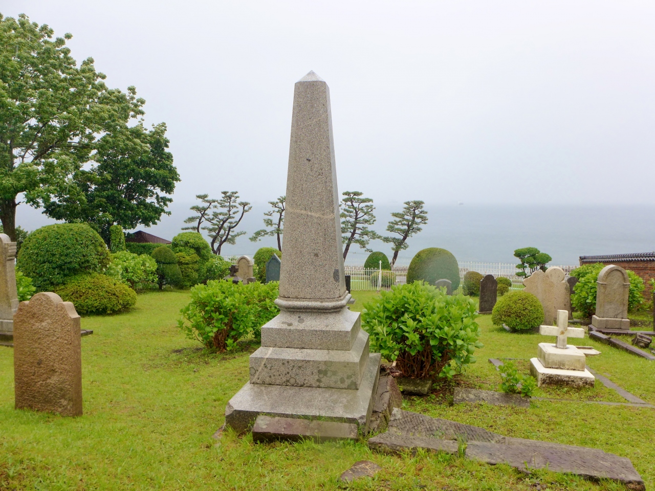 こちらの外国人墓地は、市電の「函館どつく前」から魚見坂(寺町通り)を上った先、海が見える所にありました。一見の価値があります。