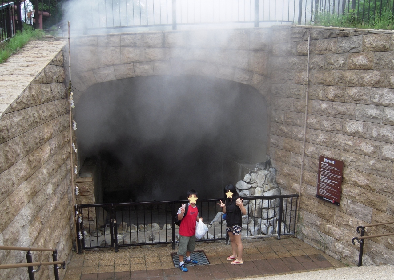 地獄谷から流れる温泉の川沿いから噴出す間欠泉を活用した公園で、約3時間毎に50分間湯が噴き出し、迫力ある音と共に硫黄の匂いが立ち込めるというものです。