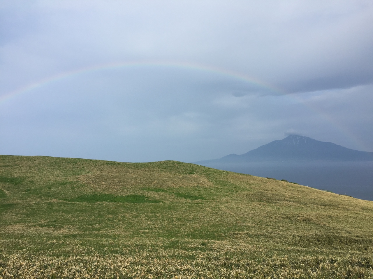 途中お天気雨が降り出し まさかの利尻富士にかかる美しい虹まで見え 大感激のコースだった。