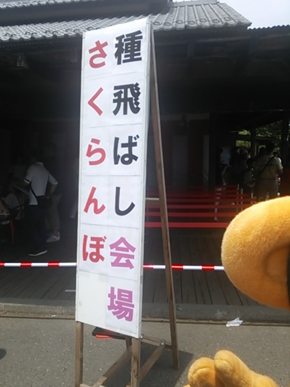 ギネスに挑戦、さくらんぼ種飛ばしの大会が開かれていました。