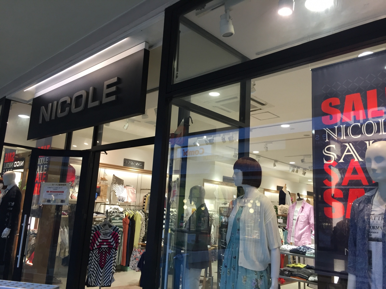昔からある(笑)DCブランドと言われたニコルのアウトレット店です。店舗は狭いですが、女性用はパーティーにも着ていけそうなフォーマルなドレスみたいなものもありました。男性ものニコルらしいスーツが揃います。スーツはセットアップで揃います。