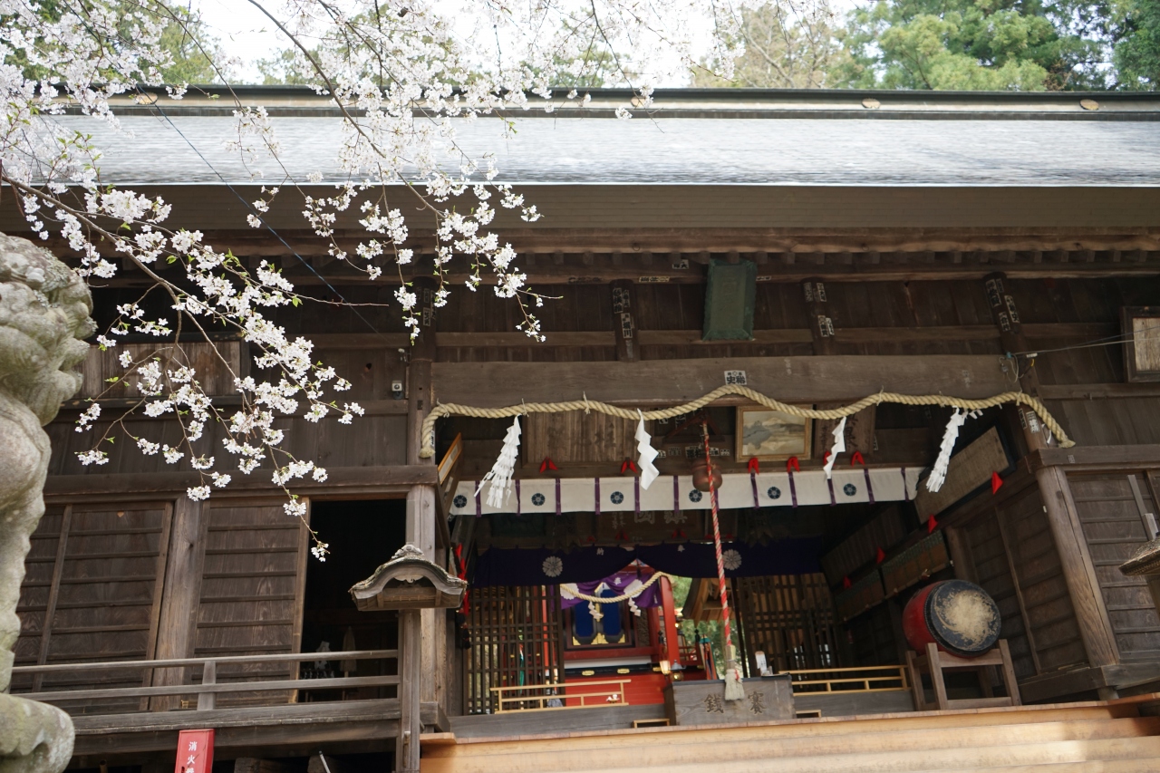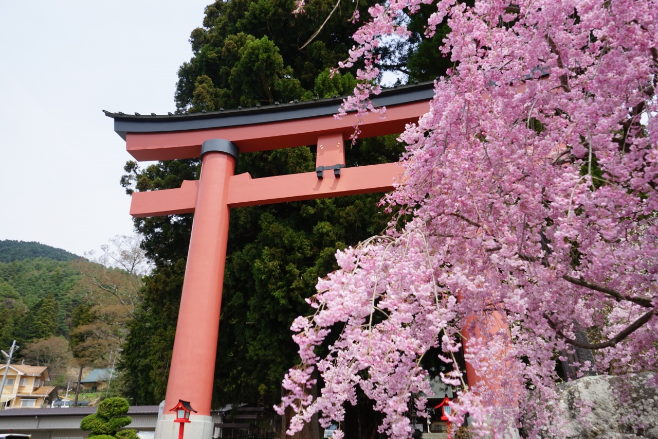 桜の時期に訪れたのですが、鳥居前の枝垂れ桜が満開でした。