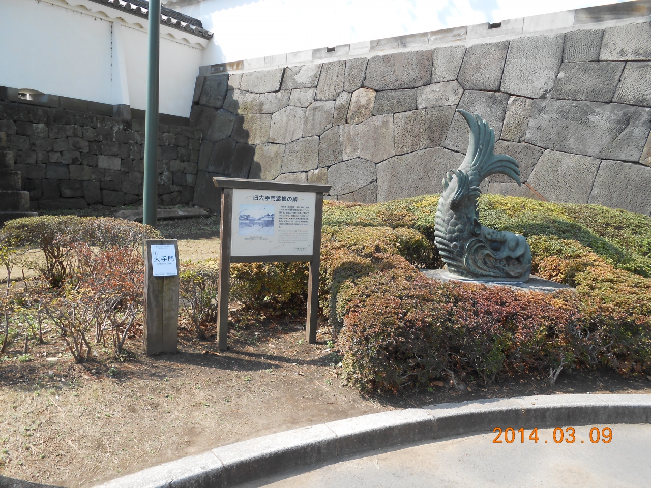 旧大手門渡櫓の鯱は、大手門の枡形内に展示されているので、大手門を通るとすぐにわかります。