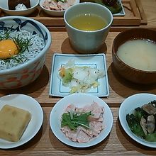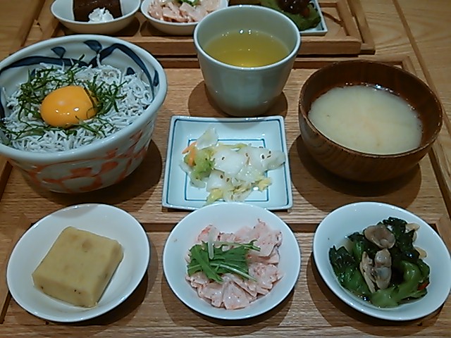 御前は1000円台のものも多く、私が頂いた「しらす丼」は1300円で、どんぶり、3品の小鉢、お味噌汁、お新香、ドリンクバーがついていて大変お得でした。