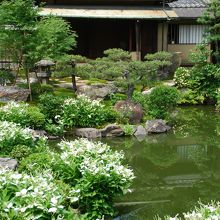 庭園の池の周りには珍しい半夏生が咲き乱れており